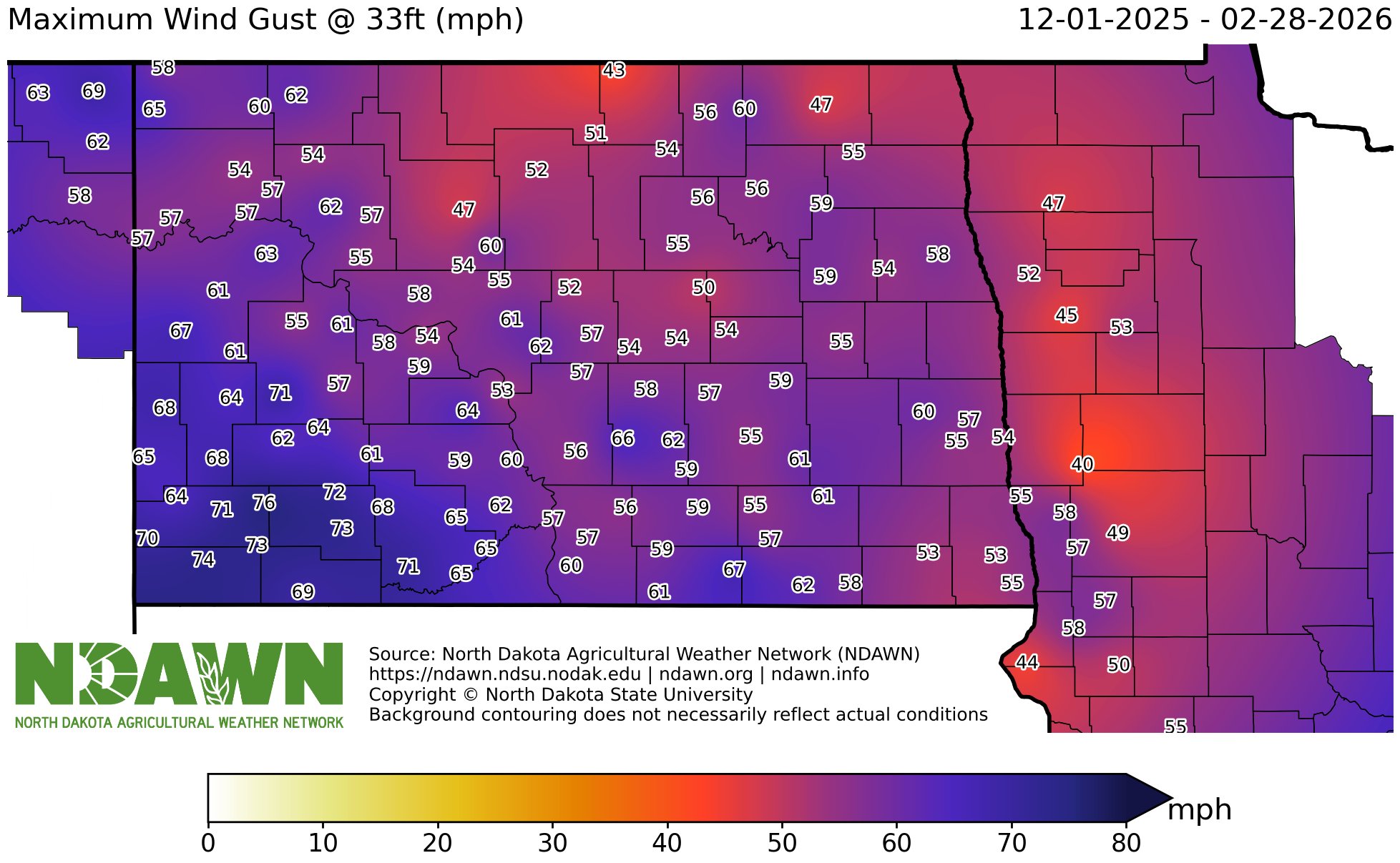 Maximum Wind Gust @ 33ft