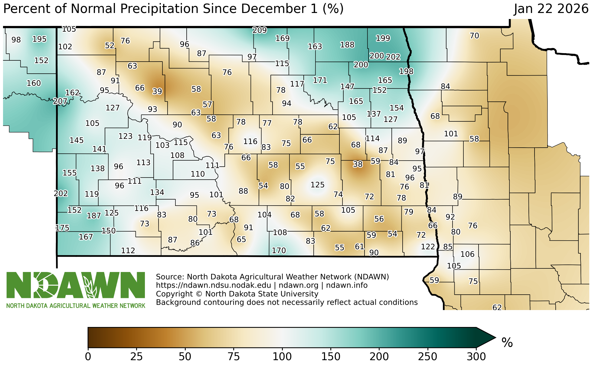 Percent of Normal Precipitation - Since December 1, 2025